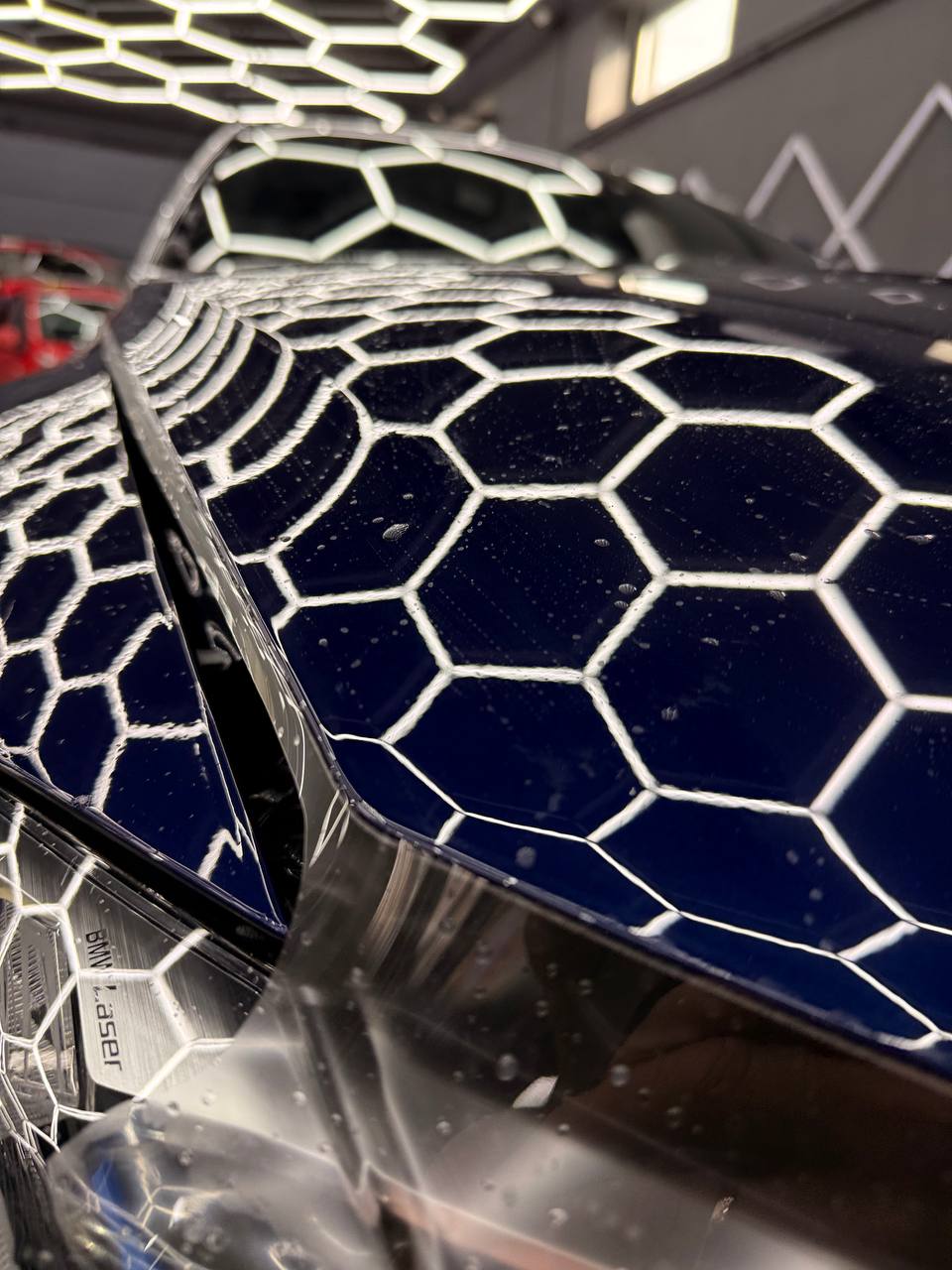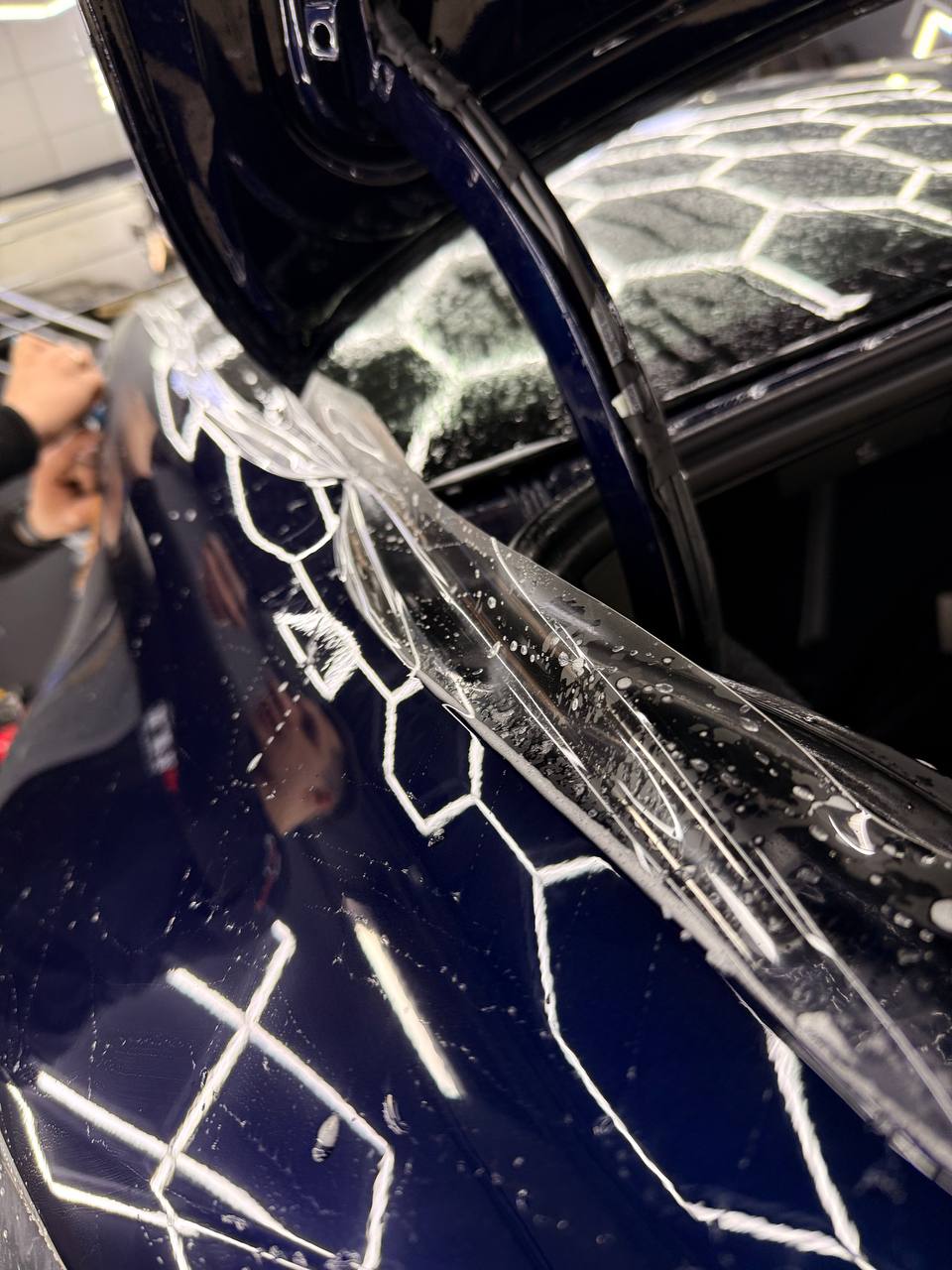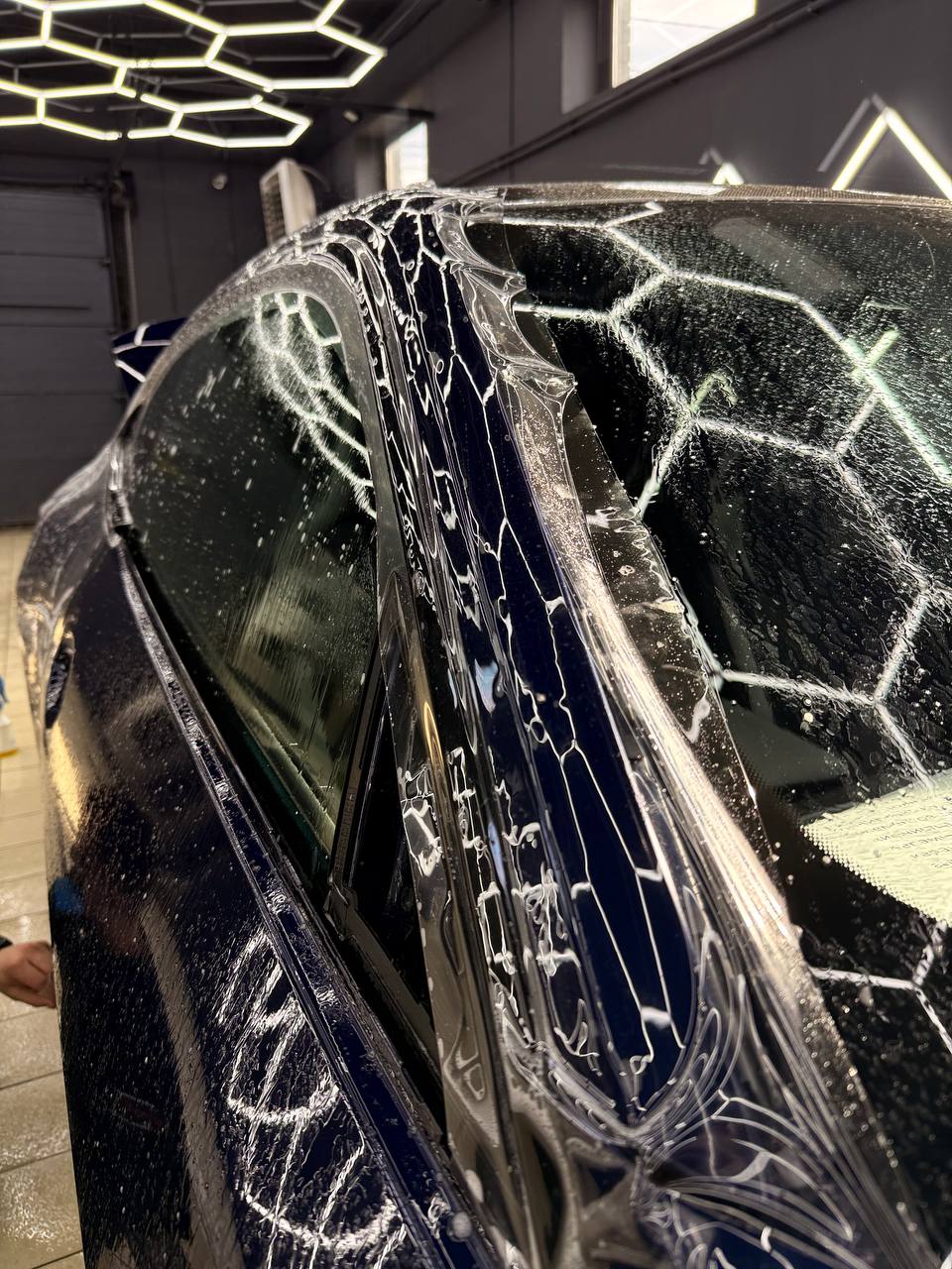 Далее не о процессе, а о конечном результате который получается на данном авто. Автомобиль будет меньше пачкаться, пленка обладает высоким гидрофобным эффектом и грязь не будет задерживаться на кузове. Ну и самое главное это защита, каждый оклеенный элемент выполнен с подворотом пленки по периметру. Сколы и царапины больше не угрожают ЛКП данного автомобиля, и если вдруг произойдет неприятная ситуация с мелким ДТП к примеру во дворе, с большей долей вероятности этот вопрос решиться заменой пленки на отдельном элементе. Так же автомобиль обрел на долго гарантированный блеск, так как пленка имеет самозаживляющий эффект и мелкие риски и царапинки будут затягиваться под воздействием температуры.