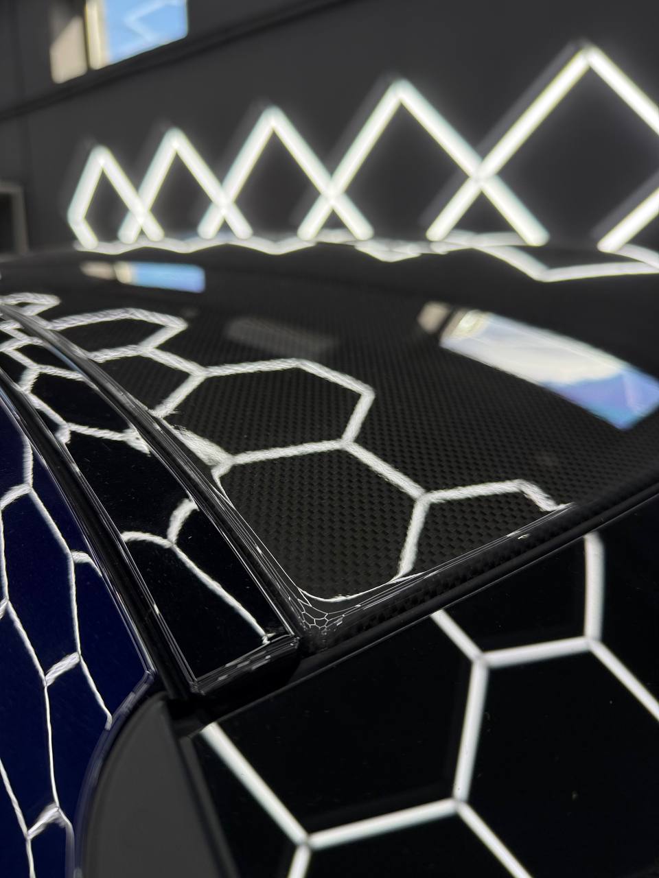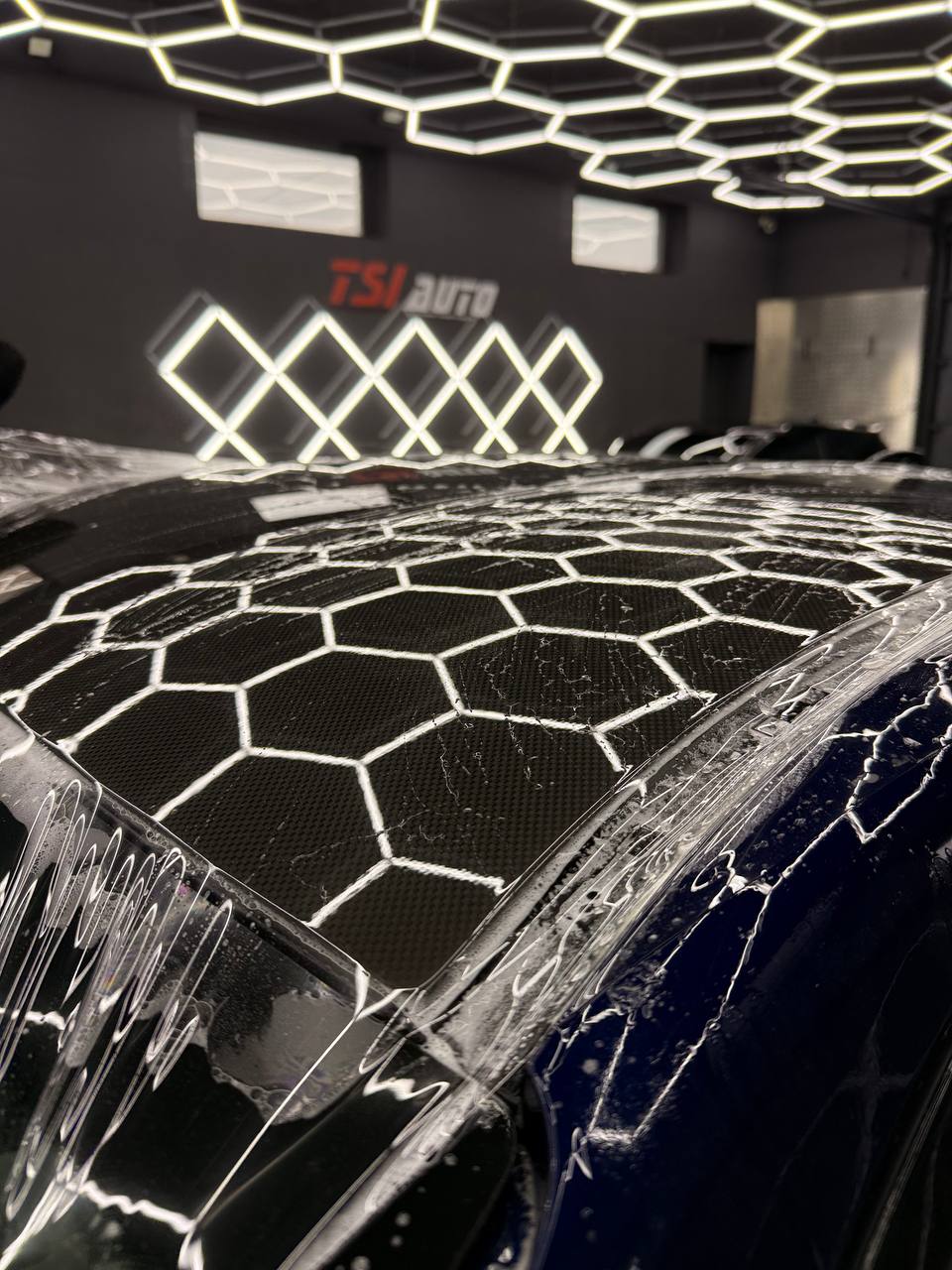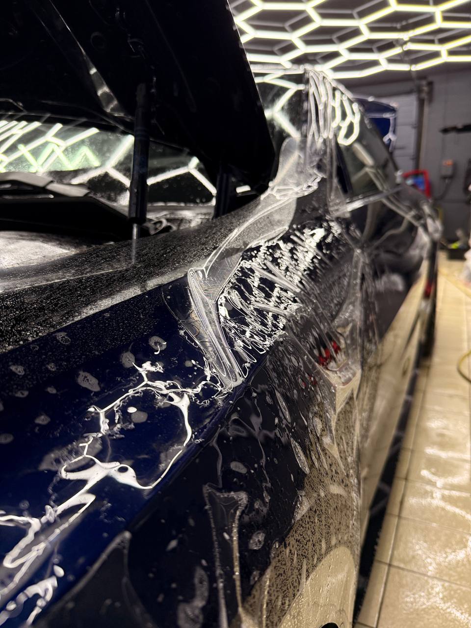 Далее не о процессе, а о конечном результате который получается на данном авто. Автомобиль будет меньше пачкаться, пленка обладает высоким гидрофобным эффектом и грязь не будет задерживаться на кузове. Ну и самое главное это защита, каждый оклеенный элемент выполнен с подворотом пленки по периметру. Сколы и царапины больше не угрожают ЛКП данного автомобиля, и если вдруг произойдет неприятная ситуация с мелким ДТП к примеру во дворе, с большей долей вероятности этот вопрос решиться заменой пленки на отдельном элементе. Так же автомобиль обрел на долго гарантированный блеск, так как пленка имеет самозаживляющий эффект и мелкие риски и царапинки будут затягиваться под воздействием температуры.