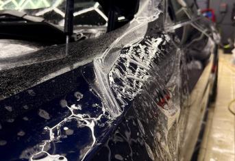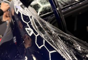 В работе применяем полиуретановую пленку NAR, толщиной 190 микрон. Эта пленка обладает функцией самовосстановления небольших царапин при высокой температуре. Клиент выбрал вариант полной оклейки своего автомобиля.