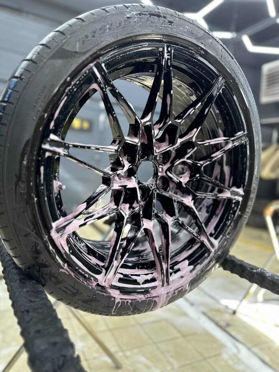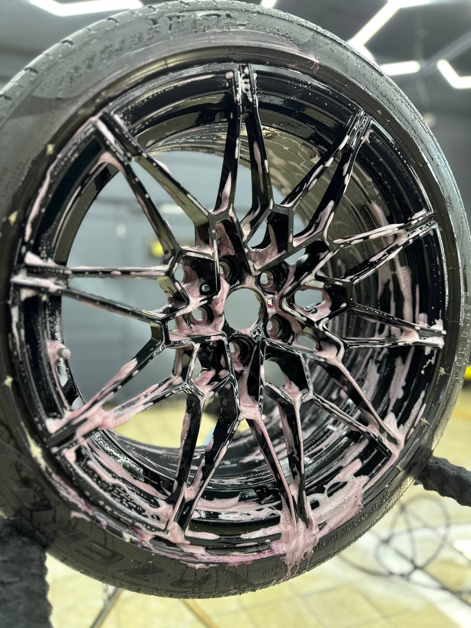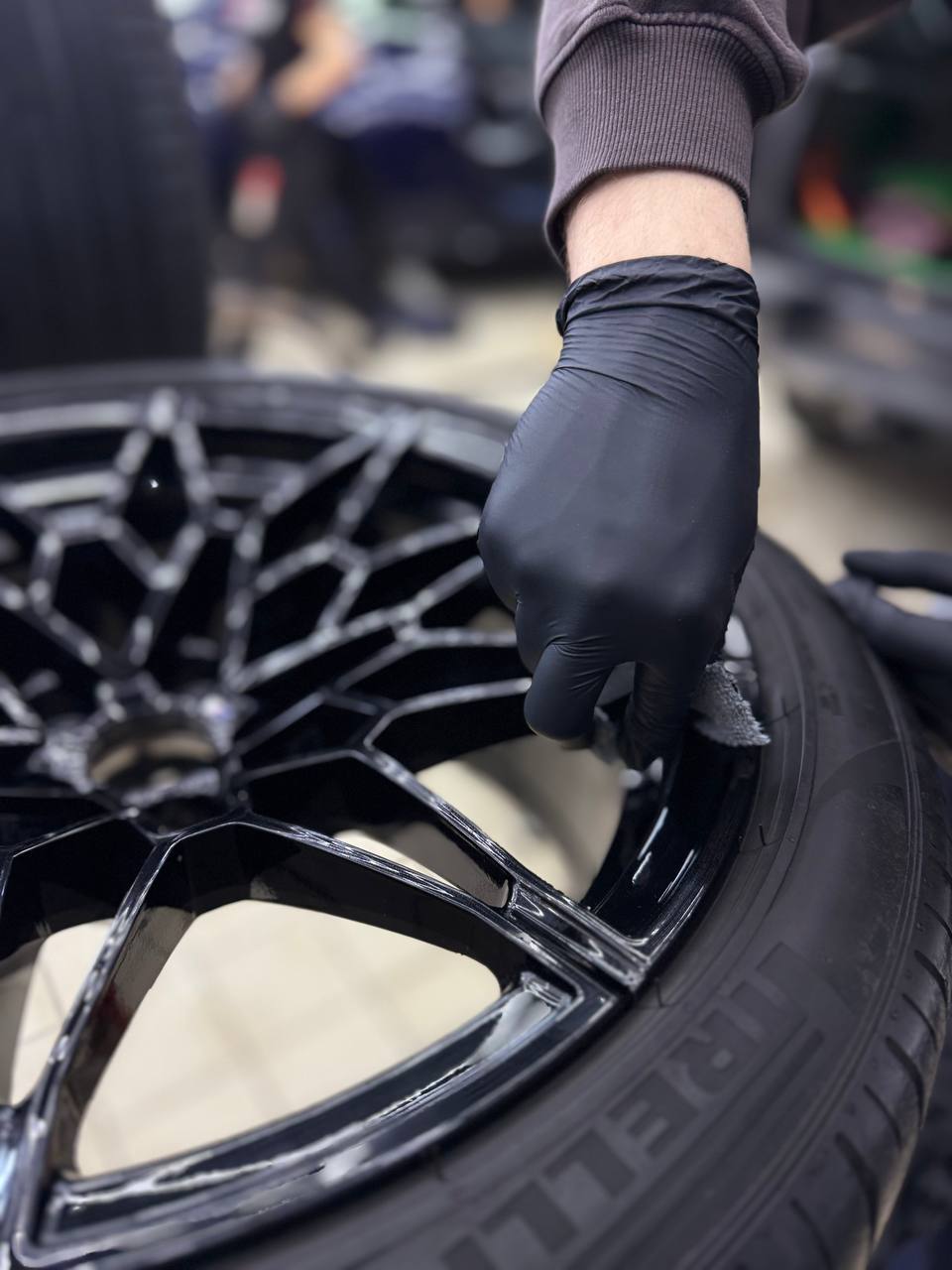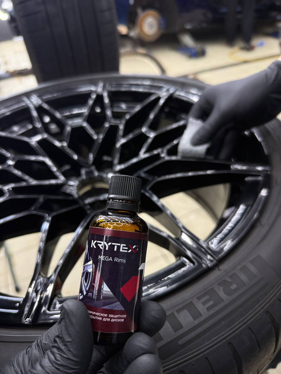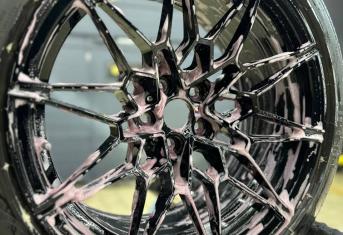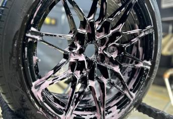 Первым делом очень важно правильно подготовить диски к работе, выполнить мойку дисков с очисткой от битума и металлических вкраплений. После нужно оценить состояние ЛКП и при необходимости устранить недочеты. Далее, в два слоя наносим керамическое покрытие Krytex. Это придаст блеск, глубину цвета и создаст отличный гидрофобный эффект на колесах автомобиля, тем самым лкп на дисках будет защищено от воздействия внешней среды и реагентов. При правильной мойке с применением подходящей химии керамический слой будет работать до 12 месяцев.