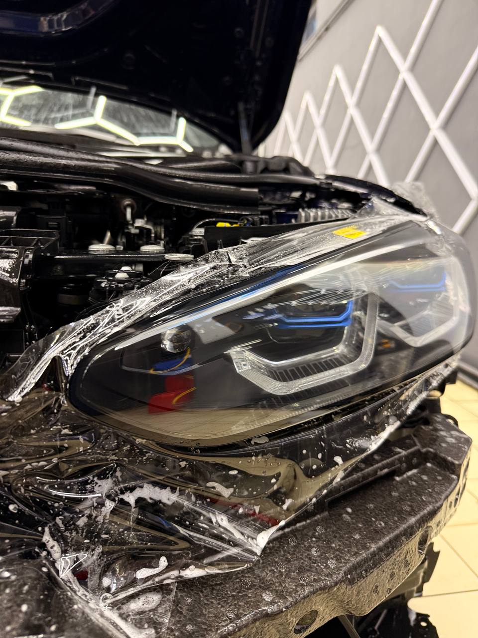 Фото оклейки капота, бампера и фар