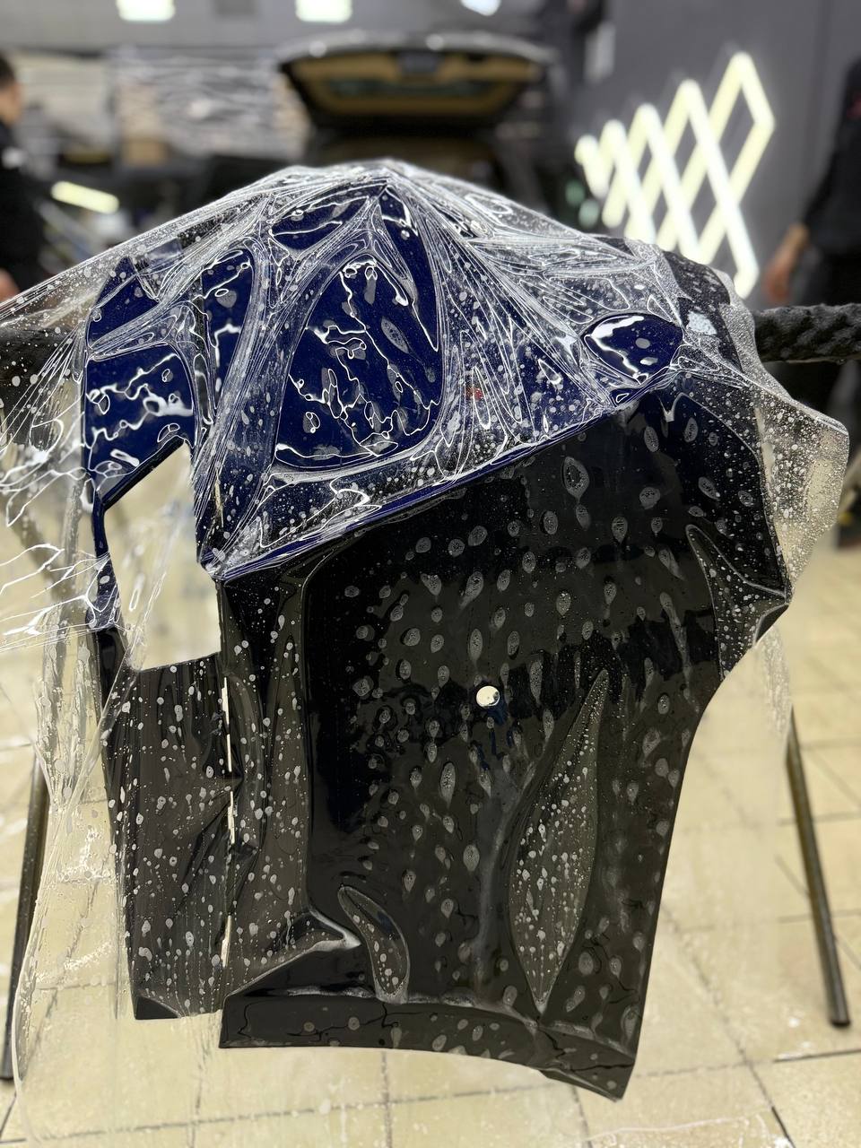 - После оклейки всех элементов автомобиль полностью собираем и делаем финишную коррекцию пленки.
