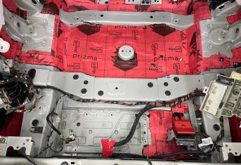 Второй слой – Шумофф Prizma шумоизолятор на основе вспененного каучука со звукоотражающей мембраной, это современный и технологичный материал который включает в себя сразу два слоя! Его мы применяем на всю плоскость пола салона и багажника в том числе и задние арки в багажнике. В задние крылья вторым слоем монтируем шумопоглотитель Шумофф Absorber А15, максимально закрывая всю плоскость крыла на сколько это позволяет конструкция автомобиля.