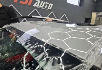 Далее не о процессе, а о конечном результате который получается на данном авто. Автомобиль будет меньше пачкаться, пленка обладает высоким гидрофобным эффектом и грязь не будет задерживаться на кузове. Ну и самое главное это защита, каждый оклеенный элемент выполнен с подворотом пленки по периметру. Сколы и царапины больше не угрожают ЛКП данного автомобиля, и если вдруг произойдет неприятная ситуация с мелким ДТП к примеру во дворе, с большей долей вероятности этот вопрос решиться заменой пленки на отдельном элементе. Так же автомобиль обрел на долго гарантированный блеск, так как пленка имеет самозаживляющий эффект и мелкие риски и царапинки будут затягиваться под воздействием температуры.