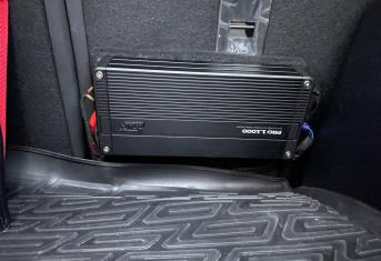 Всё установленное оборудование было куплено у нас. Мы выполняем услуги под ключ - продажа, установка и настройка оборудования для автозвука. На данном автомобиле мы установили 1 канальный усилитель с сабовым звеном, усилитель от производителя AMP, а сабвуфер от компании Helix. Для установки сабвуфера мы индивидуально изготовили короб в нишу крыла в багажнике, так как в кулрее не так много места в этих нишах динамик выбрали 8" дюймовый. Но при всем при этом этот малыш очень уверенно добавляет низких частот к звучанию аудио системы!
