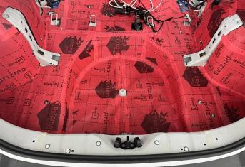 На внешний металл крышки багажника наносим виброизоляцию ШумоФФ Jack. На обшивку монтируем ШумоФФ Jack и шумопоглотитель Absorber A15. По канту обшивки и клипсы обрабатываем Шумофф Absorber 5. Проводку обрабатываем Шумофф Specific.