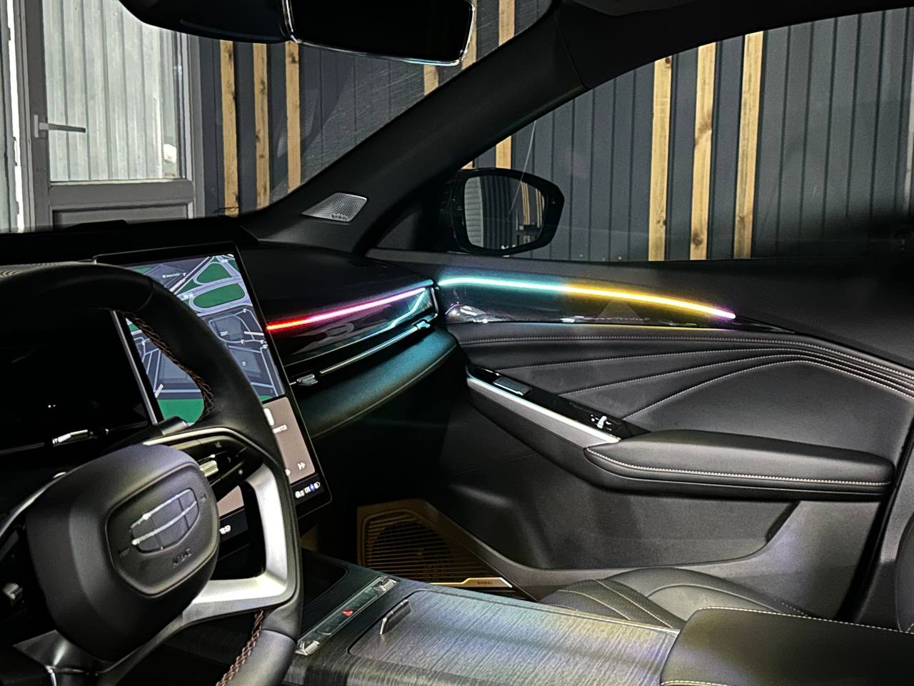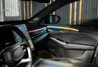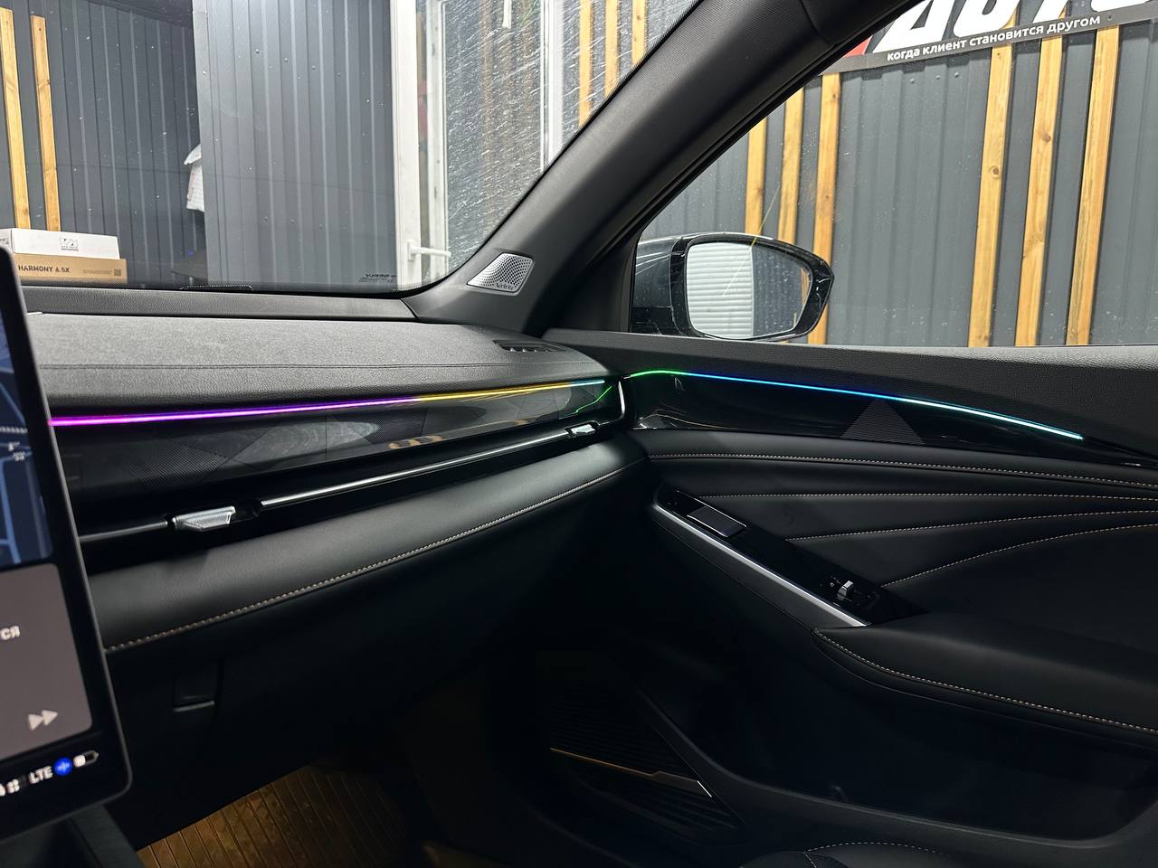 Geely Preface приехал на работы по установке дополнительного оборудования, а в частности установка атмосферной подсветки салона с управлением из приложения смартфона.