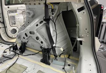 Начинаем работу с разборки дверей, подготовки поверхности и обезжириванию. Все работы по демонтажу пластика выполняются специальным инструментом. Мы гарантируем целостность клипс, креплений и отсутствие различного рода царапин, задиров на обшивках.