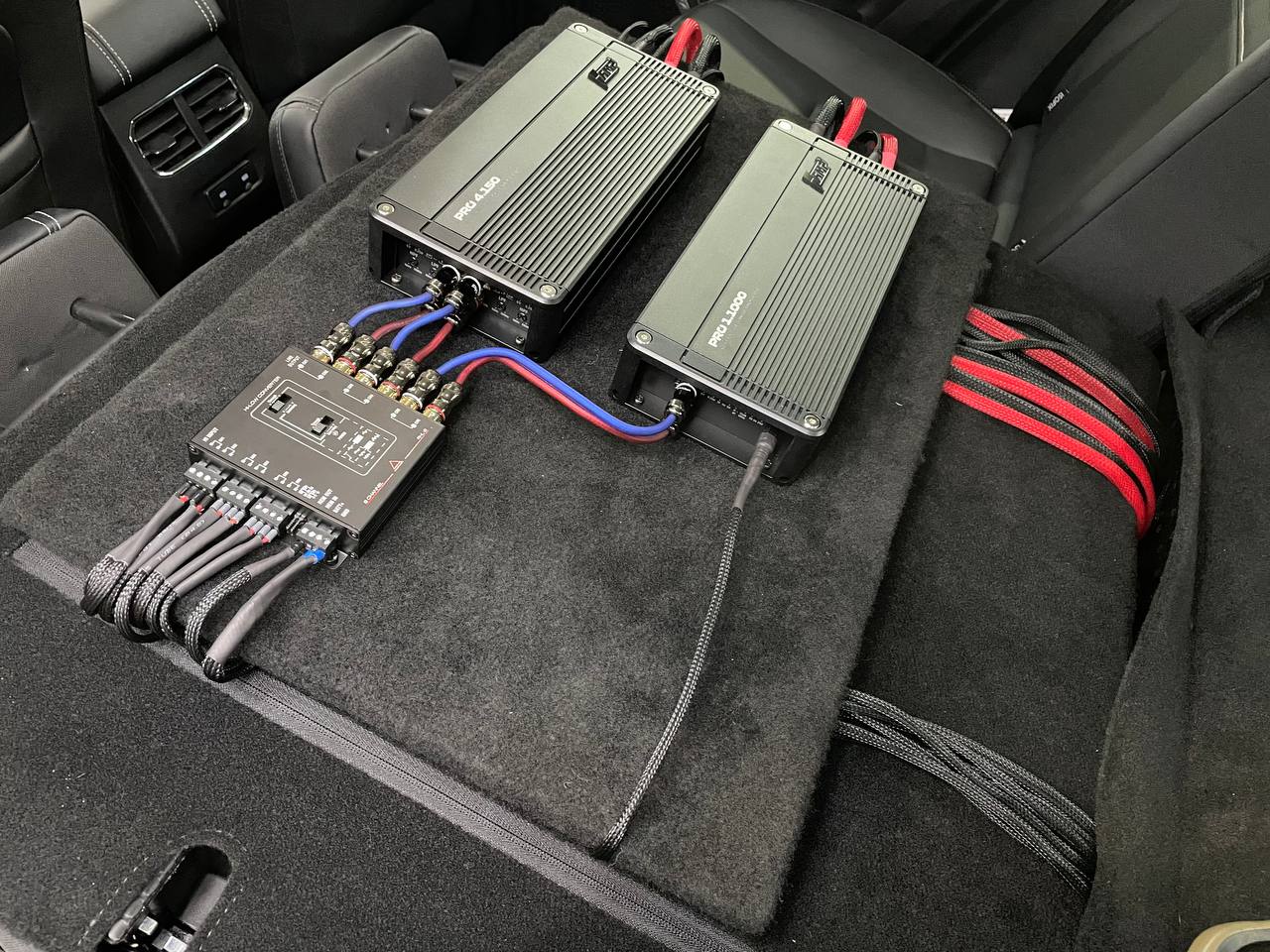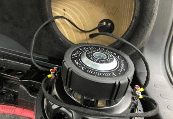 Для установки сабвуфера мы использовали заказной стелс короб в нишу крыла под динамик 10 дюймов, сам динамик от компании Best Balance. Усилители и моноблок смонтировали на спинке заднего ряда сидений. Силовая проводка уложена по штатным местам, с обязательной установкой предохранителя под капотом. Тем самым мы сохранили функционал автомобиля и выиграли немного места в багажнике.