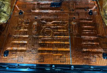 Первый слой - виброизоляция Шумофф М2. Затем уложили шумо-теплоизоляцию Шумофф П4 для сохранения комфортной температуры внутри авто. Финальный слой шумопоглотитель Шумофф Герметон 7. Материал плотно прикатывается валиком по ровной плоскости, исключая усилители и попадание воздуха.