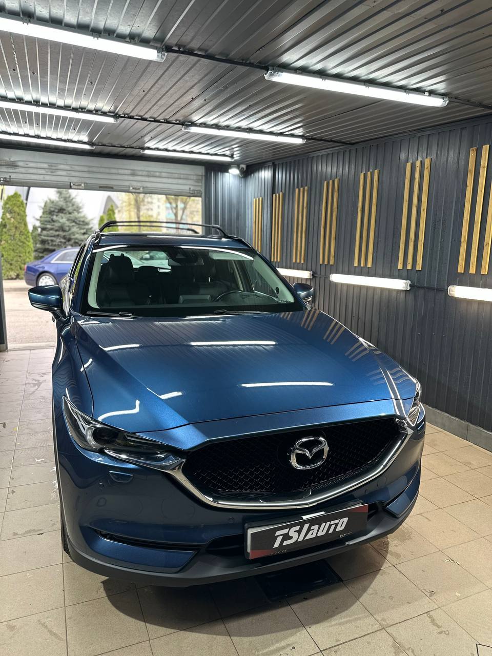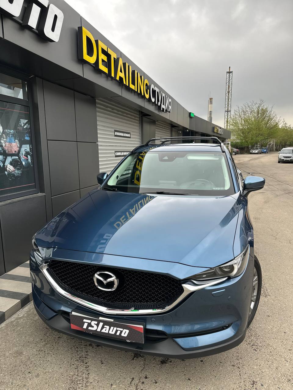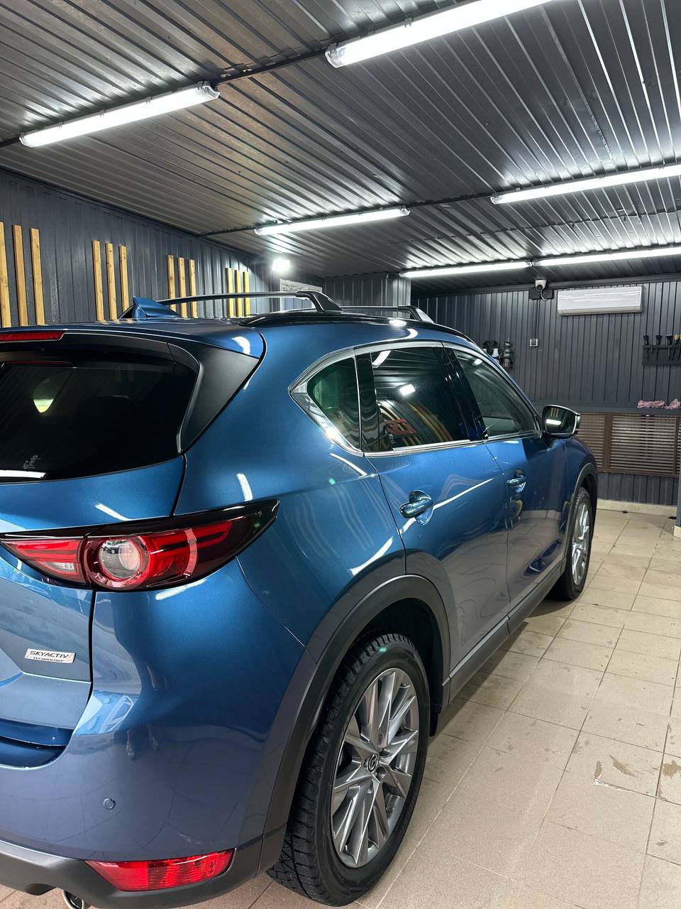 На работы с Mazda CX-5 у нас ушел 1 рабочий день. Все работы проводились без снятия элементов кузова, лишь оклеивание пластика и хромированных элементов.