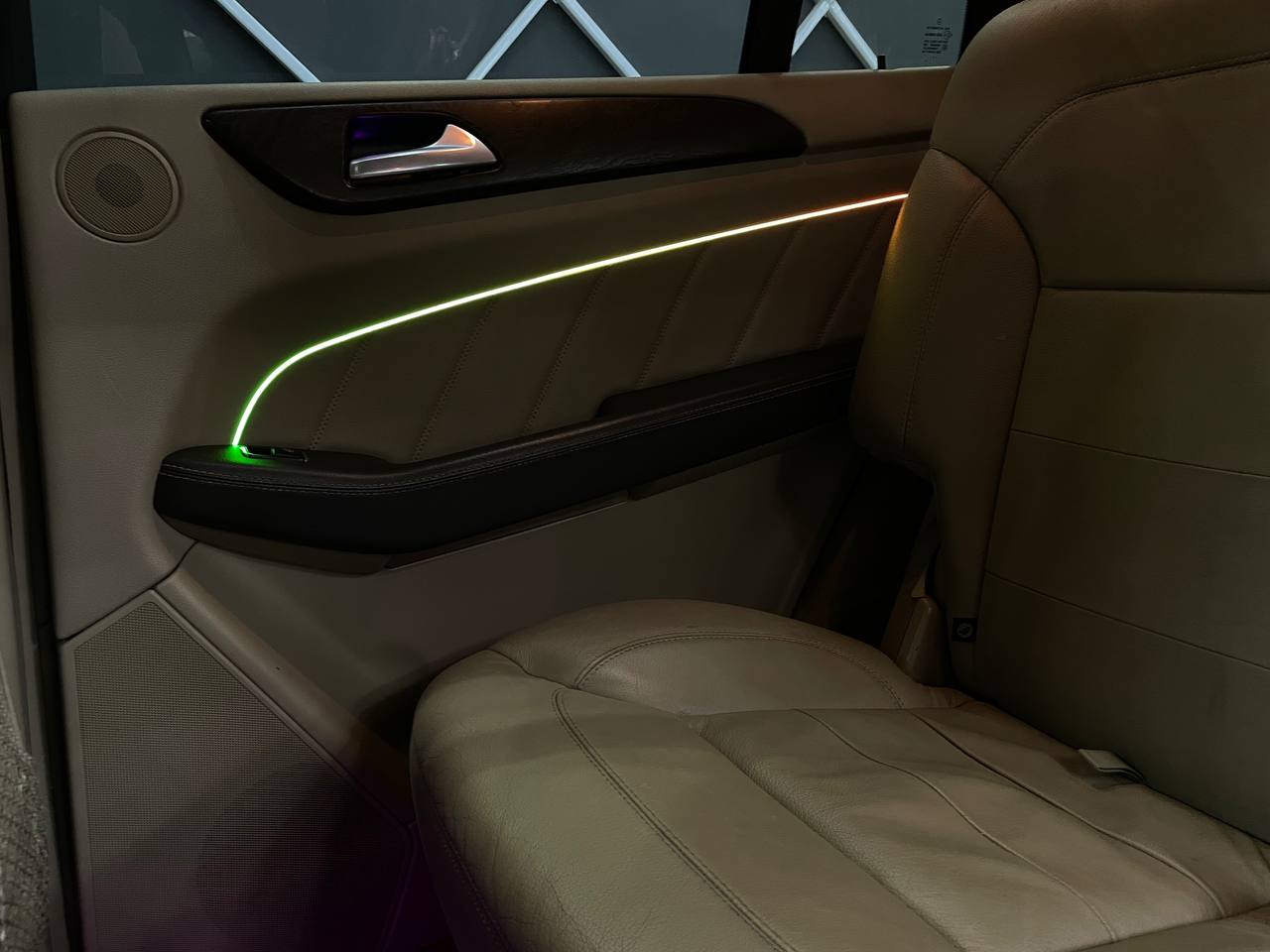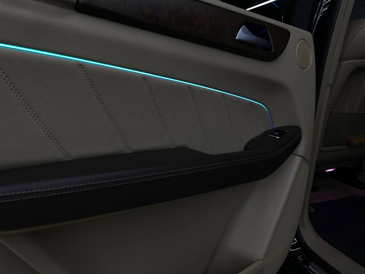 Mercedes GL приехал на работы по установке дополнительного оборудования, а в частности установка атмосферной подсветки салона с управлением из приложения смартфона.