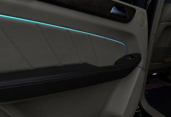 - В каждой двери - нить световода, подсветка в области ручек открывания дверей, освещение дверных карманов;