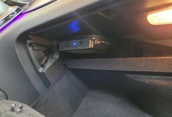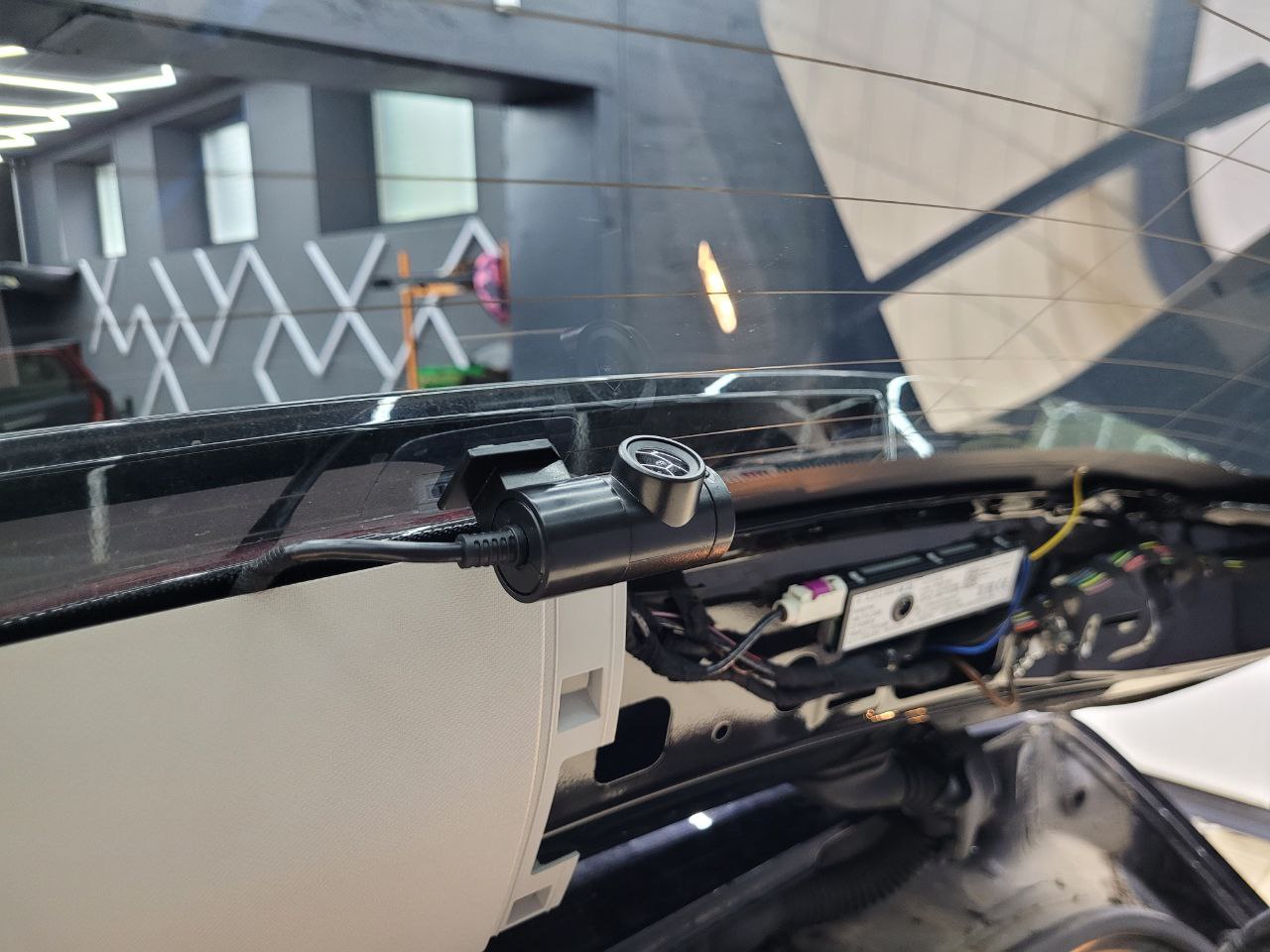Записывающий блок расположили в бардачок. Камеры установлены на лобовом стекле и крышке багажника. Проводка обработана антискрипом и скрыто уложена под обивками салона, с обязательной установкой предохранителя в этой цепи.