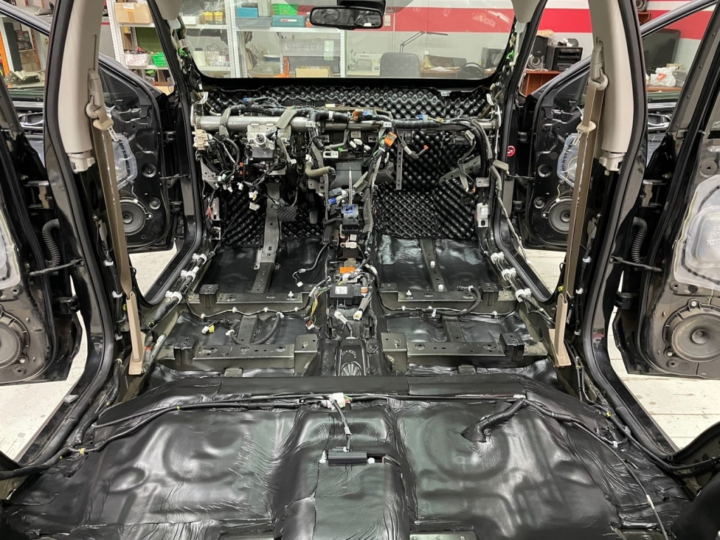 Владелец этого авто пожелал вместе с полной шумоизоляцией салона снять торпедо и сделать шумоизоляцию этого элемента. Мы не включаем это в полную шумоизоляцию, поэтому данная процедура делается за дополнительную плату.