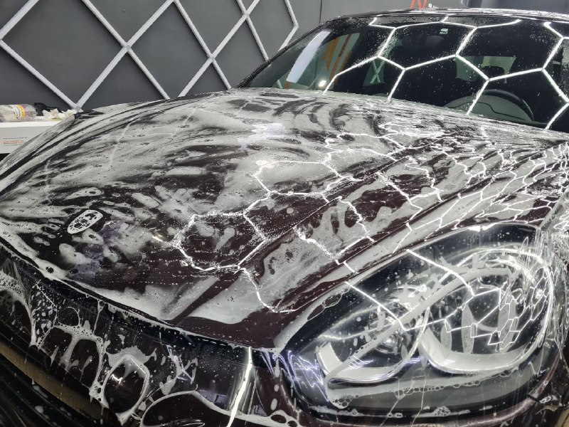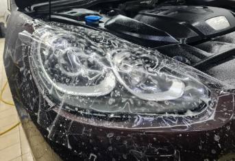 Фото оклейки капота Porsche Cayenne, бампера и фар