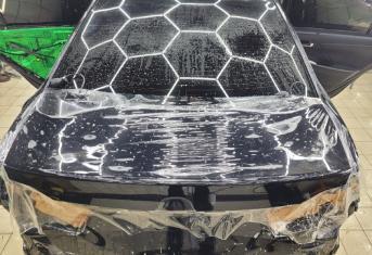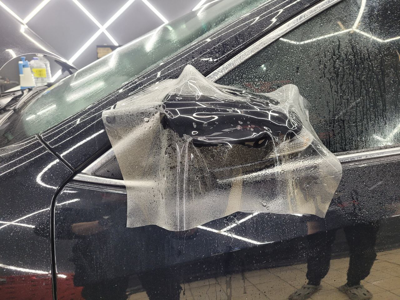В работе применяем полиуретановую пленку NAR, толщиной 190 микрон. Эта пленка обладает функцией самовосстановления небольших царапин при высокой температуре. Клиент выбрал вариант полной оклейки своего автомобиля.