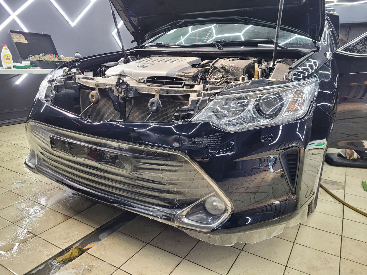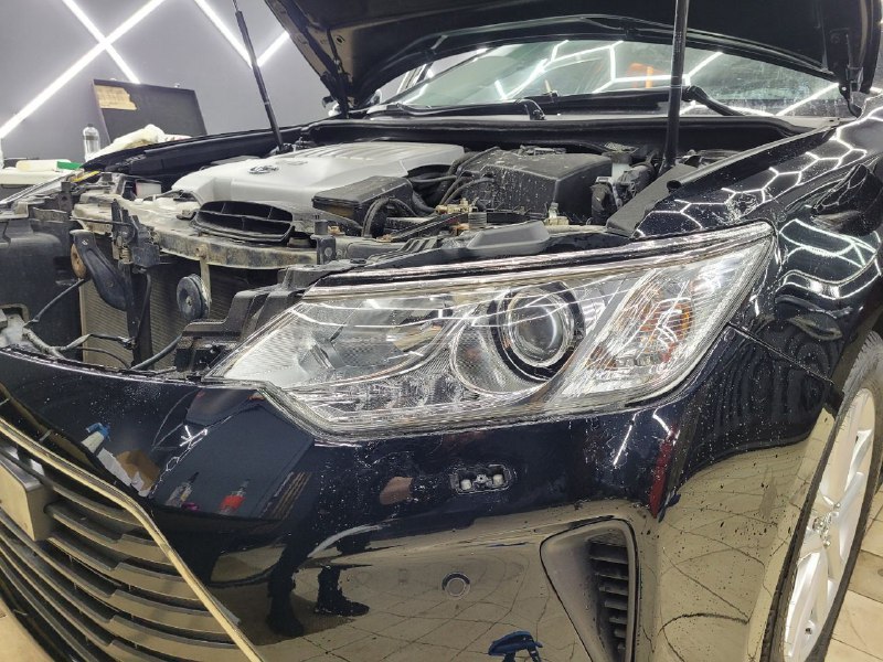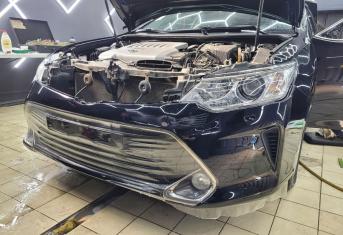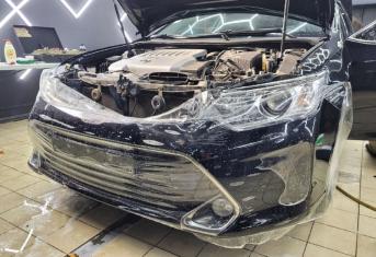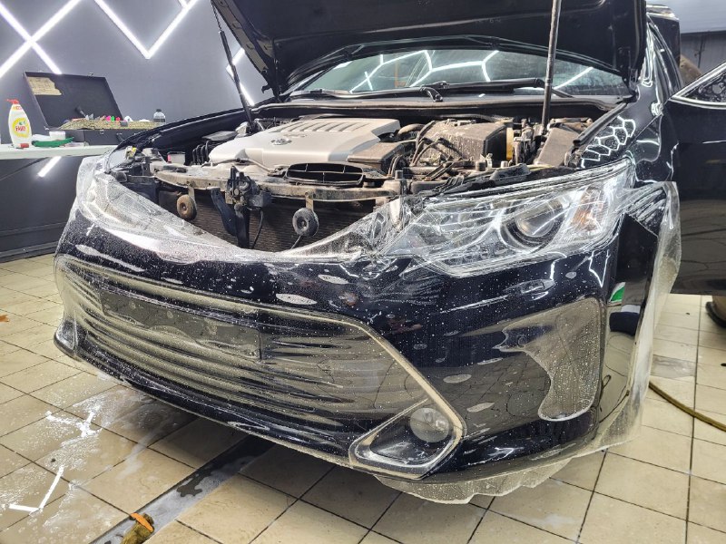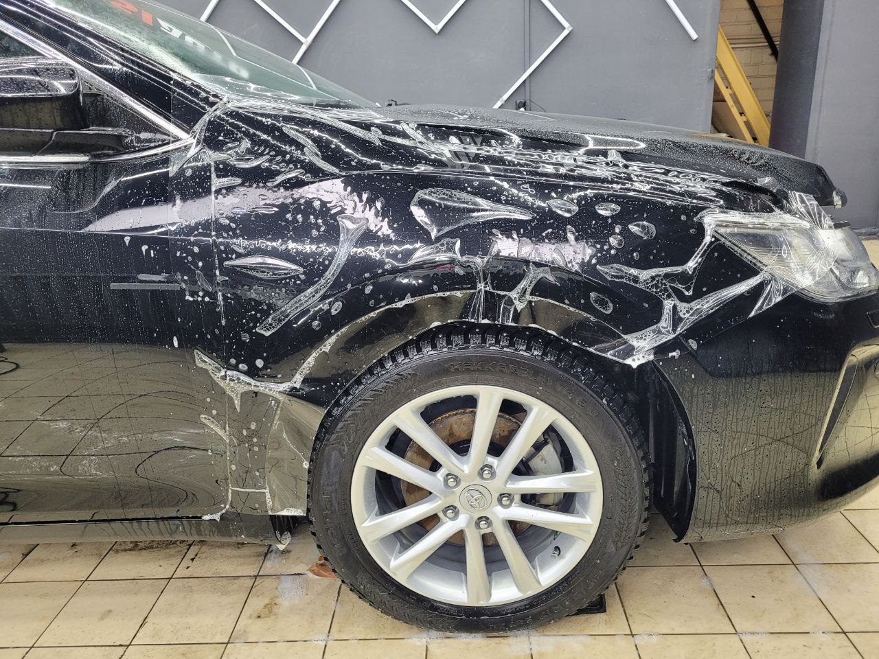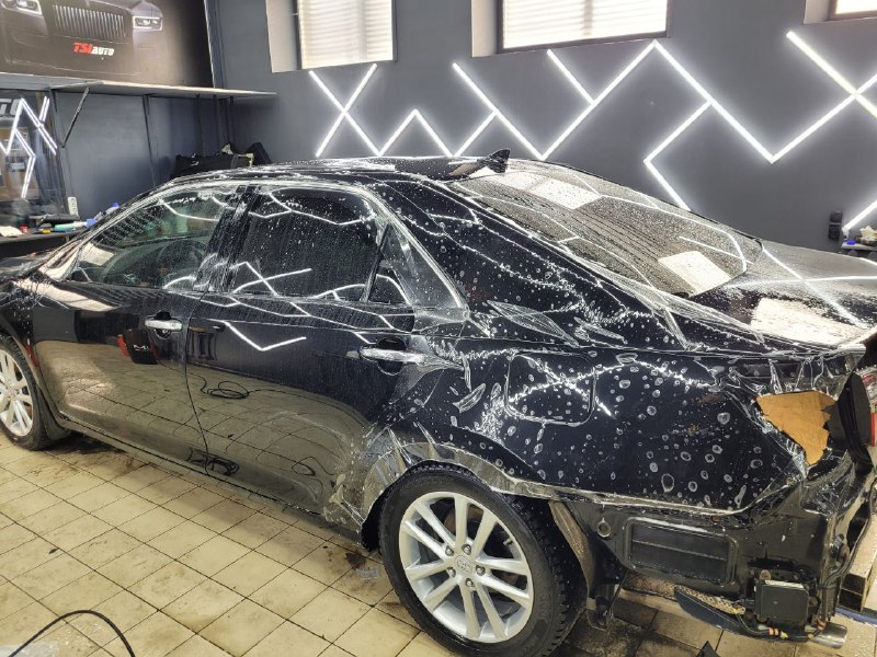 Toyota Camry приехал на работы по полной оклейке пленкой кузова. Команда TSIauto рекомендует бронировать пленкой наиболее уязвимые места новых автомобилей, это защитит элементы кузова от сколов, царапин и мелких ДТП. Пленку гораздо легче заменить в будущем, без поиска мест где смогут хорошо окрасить поврежденный элемент и при последующей продаже авто не будет торга с покупателем. На самом деле пленка имеет больше преимуществ, про которые мы расскажем ниже.