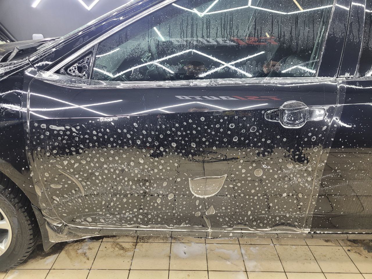 - Оценка состояния ЛКП – осмотр, выявление дефектов и элементов с вторичным окрасом. При необходимости можно сделать легкую полировку, но на данном авто этого не потребовалось.