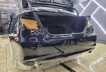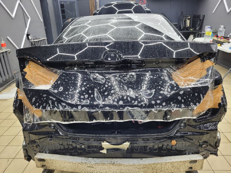 - После оклейки всех элементов автомобиль полностью собираем и делаем финишную коррекцию пленки.