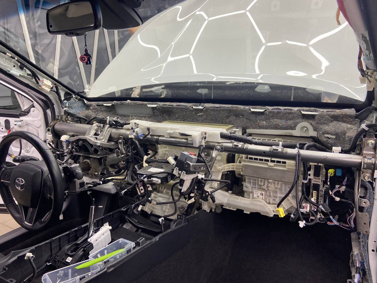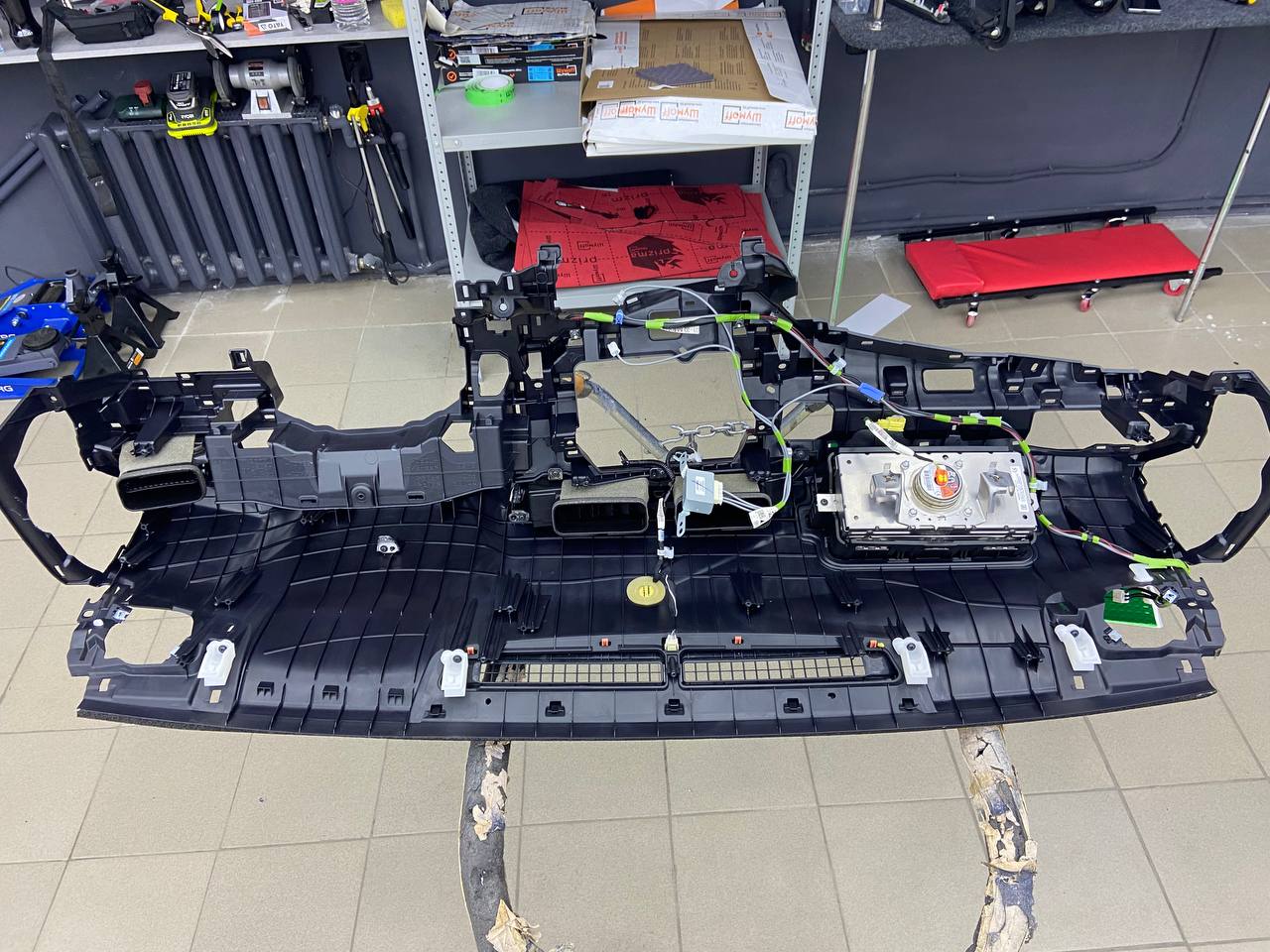 Сегодня мы подготовили фотоотчёт о шумоизоляции торпедо Toyota Camry. Тотальное устранение скрипов пластика и раздражающего дребезга. Точную стоимость выполнения работ на данный момент уточняйте у наших менеджеров. Выполнили эту работу мы за 1 день, благодаря предварительной подготовки материала и слаженной работе мастеров.