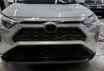 Toyota RAV 4 приехал на работы по оклейке пленкой кузова в пакете Трасса расширенный. Команда TSIauto рекомендует бронировать пленкой наиболее уязвимые места новых автомобилей, это защитит элементы кузова от сколов, царапин и мелких ДТП. Пленку гораздо легче заменить в будущем, без поиска мест где смогут хорошо окрасить поврежденный элемент и при последующей продаже авто не будет торга с покупателем. На самом деле пленка имеет больше преимуществ, про которые мы расскажем ниже.