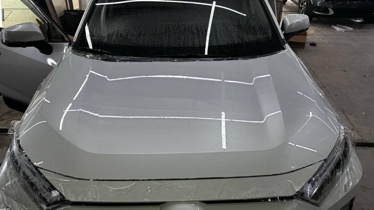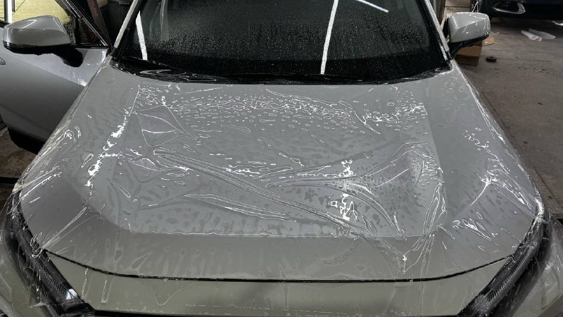 В работе применяем полиуретановую пленку NAR, толщиной 190 микрон. Эта пленка обладает функцией самовосстановления небольших царапин при высокой температуре. Клиент выбрал вариант полной оклейки своего автомобиля.