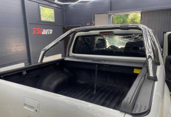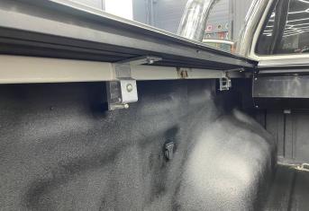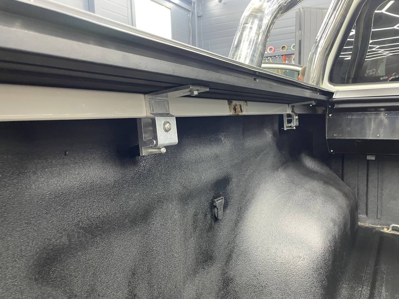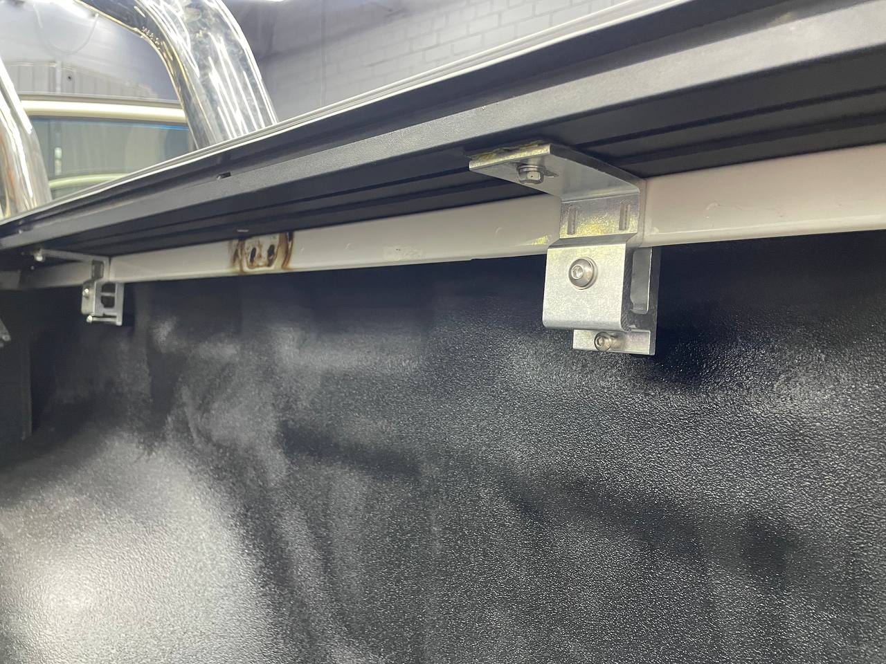 Работы с Amarok мы начали с установки механической роллеты. Первым делом мы рекомендуем оклеить защитной полиуретановой пленкой верхние части бортов кузова, для того чтобы защитить место примыкания роллеты к кузову и исключить перетирание ЛКП в этом месте. Далее устанавливаем механическая роллету на кузов Volkswagen Amarok без сверления кузова, на струбцины. Так же устанавливаем предусмотренные производителем дренажи для отвода воды которая попадает на крышку в закрытом виде.