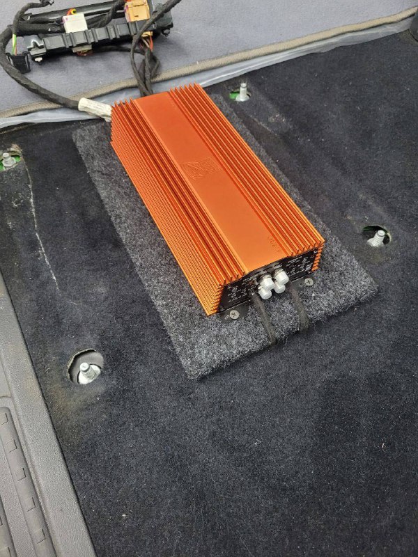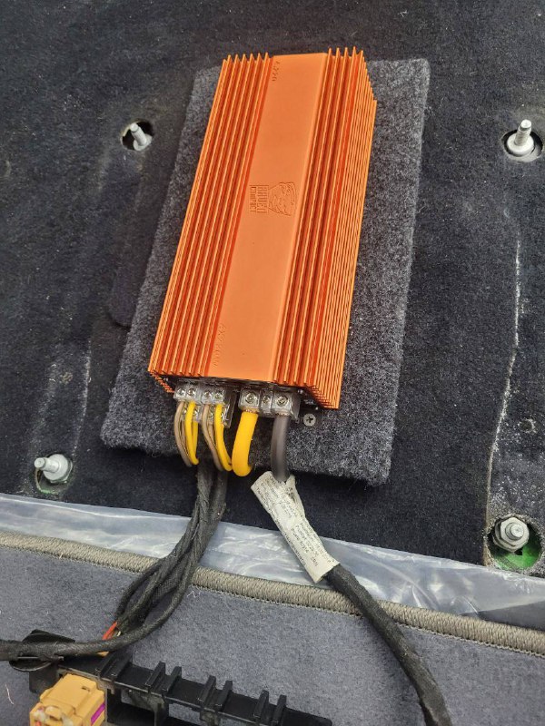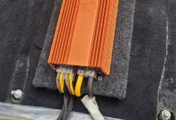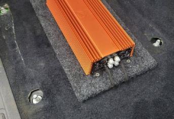 В передних дверях у нас расположились двадцатые широкополосные динамики, а в задние боковины 16 широкополосники. Силовая проводка уложена по штатным местам, с обязательной установкой предохранителя под капотом. Управляет системой по прежнему штатное головное устройство, добиться этого получилось с помощью установки конвектора уровня, который как и усилитель мы расположили под передним правым сидением. Тем самым сохранили полезное пространство в багажнике.