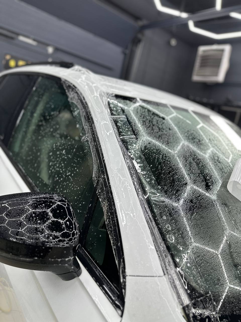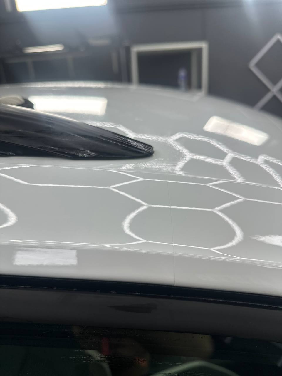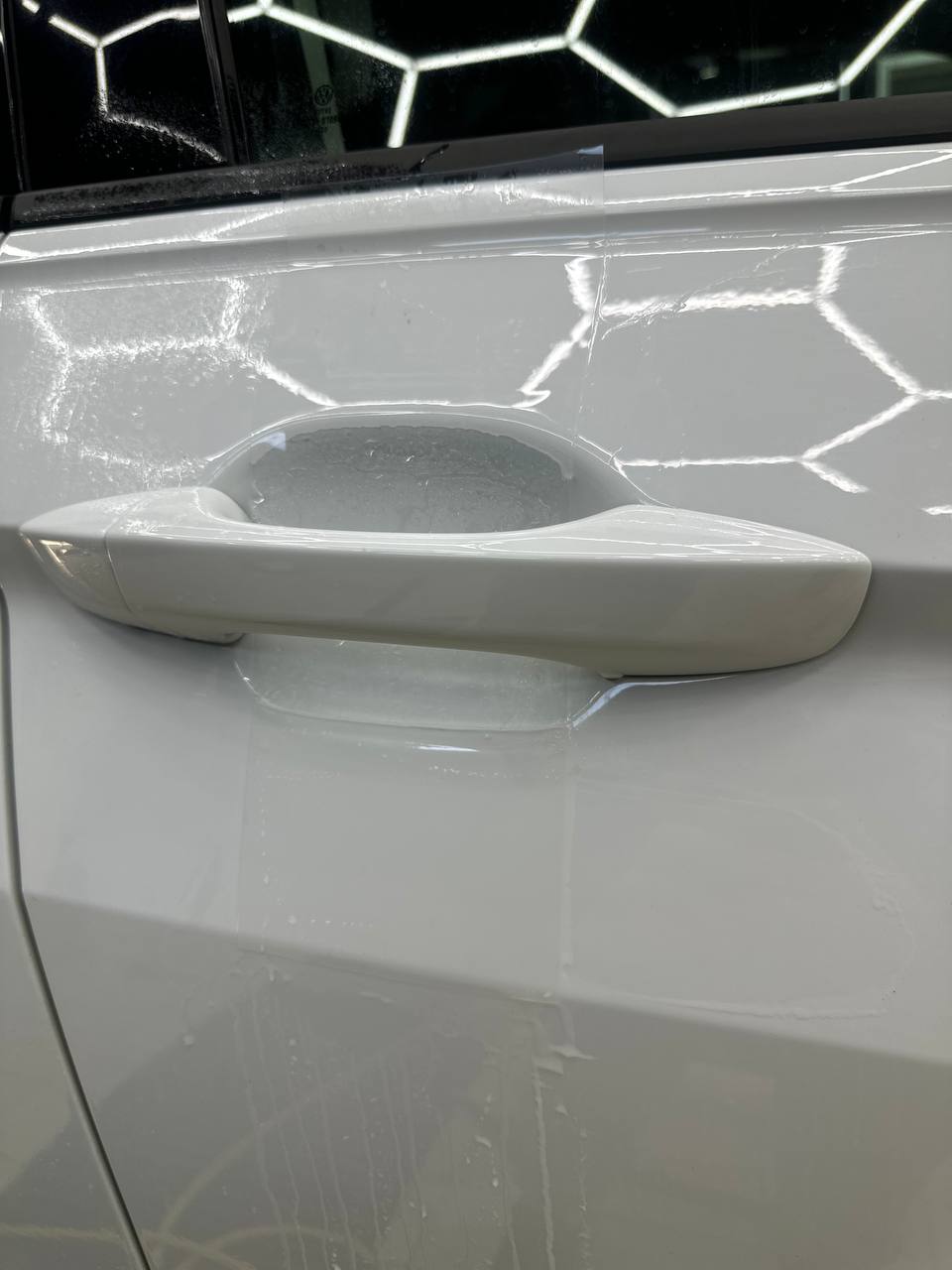 Далее не о процессе, а о конечном результате который получается на данном авто. Автомобиль будет меньше пачкаться, пленка обладает высоким гидрофобным эффектом и грязь не будет задерживаться на кузове. Ну и самое главное это защита, каждый оклеенный элемент выполнен с подворотом пленки по периметру. Сколы и царапины больше не угрожают оклеенным кузовным элементам данного автомобиля, и если вдруг произойдет неприятная ситуация с мелким ДТП к примеру во дворе, с большей долей вероятности этот вопрос решиться заменой пленки на отдельном элементе. Так же автомобиль обрел на долго гарантированный блеск, так как пленка имеет самозаживляющий эффект и мелкие риски и царапинки будут затягиваться под воздействием температуры.