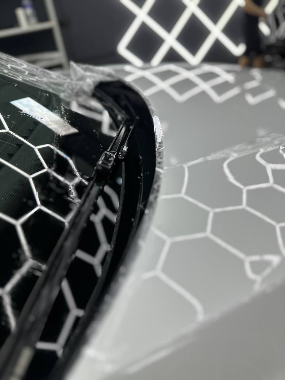 - Арматурные работы – снимаем решетку, бампер из-за его сложной формы. Это необходимо чтобы сделать максимально качественные подвороты пленки.
