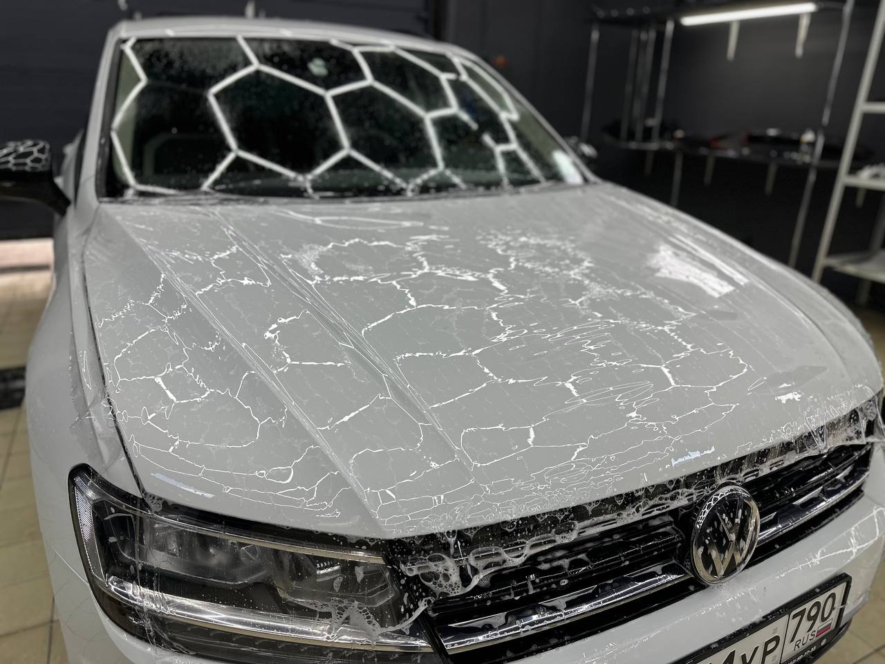 Мы потратили 2 рабочих дня на Volkswagen Tiguan. Так же владельцу в обязательном порядке будет необходимо приехать к нам на контрольный осмотр пленки не позднее чем через 7 дней, это обязательное условие гарантийных обязательств!