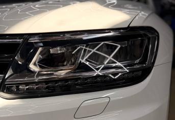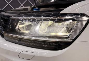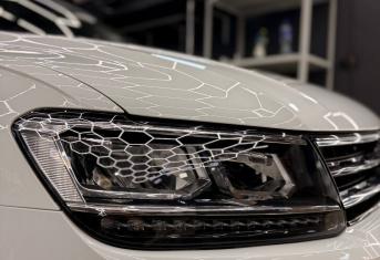 При увеличении пробега автомобиля наблюдается потеря прозрачности стекол, что влечёт за собой уменьшение светопропускания и может стать риском для безопасности на дороге. Volkswagen Tiguan был доставлен для выполнения работ по восстановлению прозрачности фар и их последующей защиты полиуретановой пленкой.
