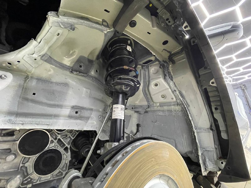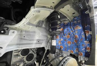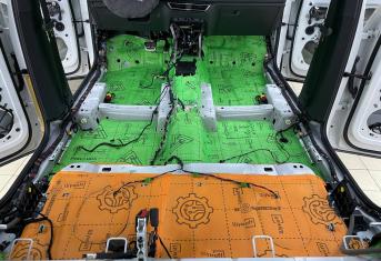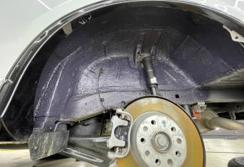 Подготовительные работы начинаются со съема колес, локеров и защиты необрабатываемых элементов. Все поверхности предварительно тщательно вымываем от грязи и обезжириваем. Важно знать, если автомобиль был обработан антикором у официального дилера, то монтаж наших материалов может быть затруднен, а в некоторых случаях вообще невозможен – виброизоляция просто не прилипнет к такой обработке, как правило она жирная или остается всегда в невысохшем состоянии.
