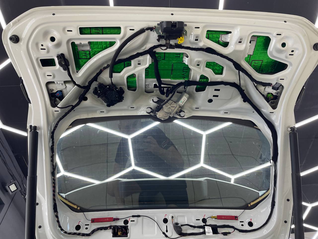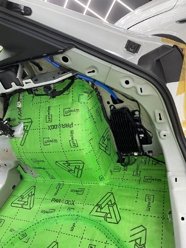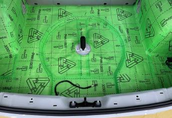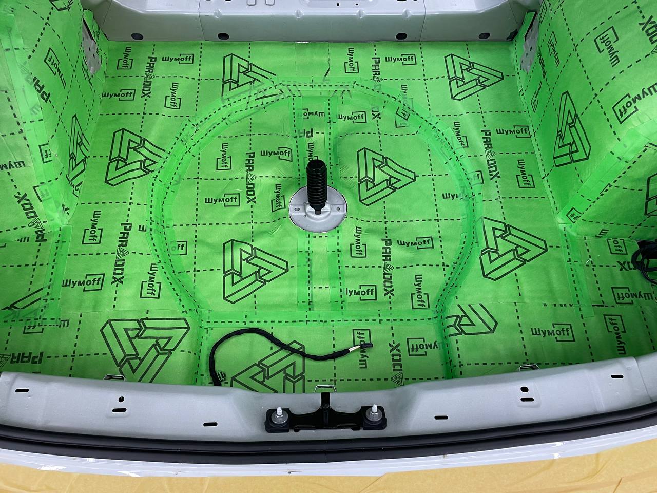 На крышку багажника укладываем виброизоляцию Шумофф М3. На обшивку Шумофф Flex A15.