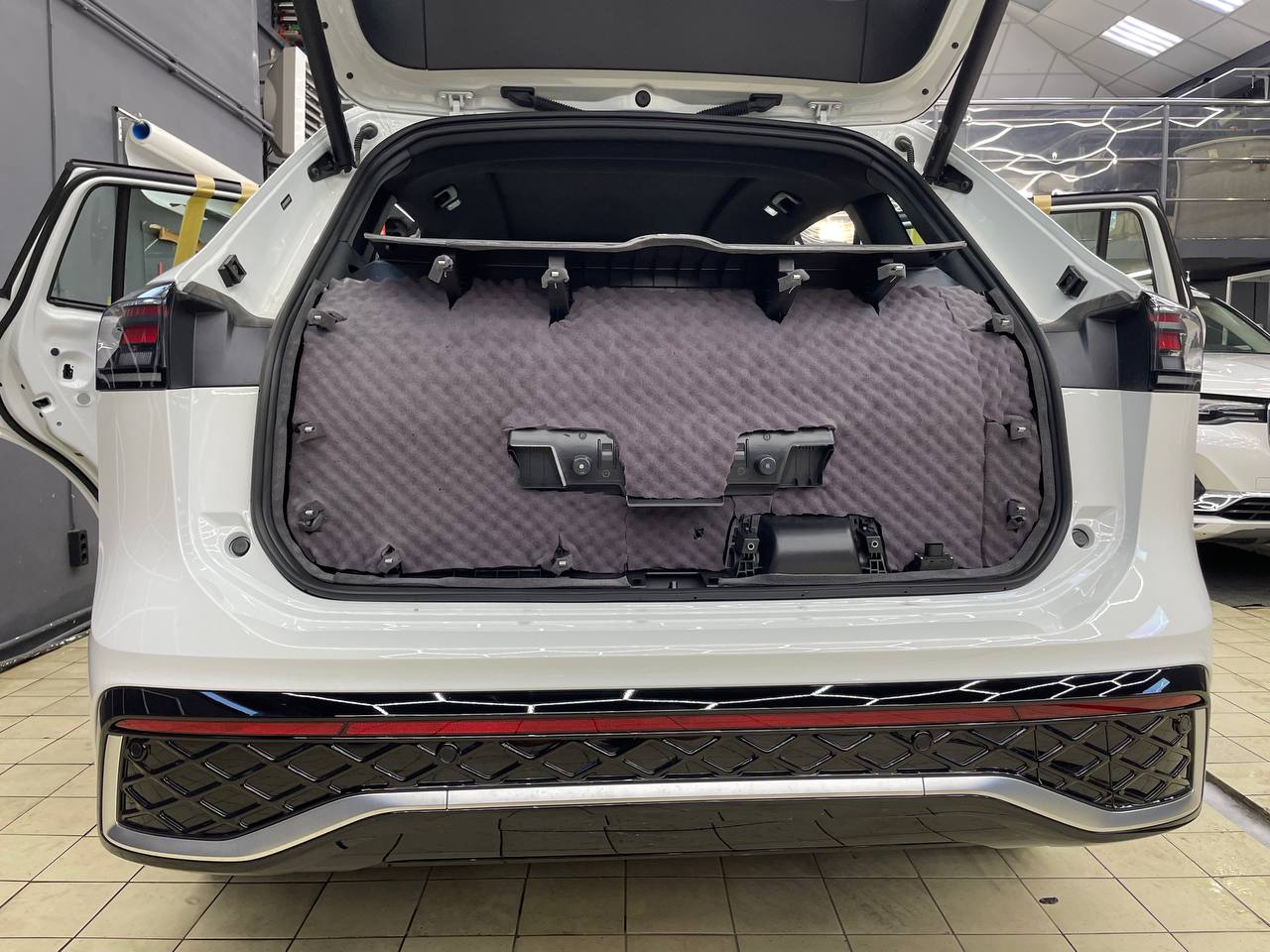 Сегодня мы подготовили отчёт о комплексной шумоизоляции авто Volkswagen Tiguan L Pro в пакете «Комфорт» с дополнительной обработкой арок снаружи. Стоимость выполнения работ вы можете уточнить у наших менеджеров по телефону. Выполнили эту работу мы за 1 рабочий день, благодаря слаженной работе сотрудников детейлинг-центра и предварительной подготовке материалов.