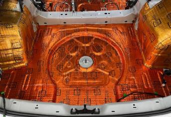 Штатная шумоизоляция в Volkswagen Tiguan L Pro уложена выборочно, принцип как и на остальных европейских авто. Напыление вибродемпфера есть на полу, в нише запасного колеса, полосы на задних арках и дверях. И на этом всё - в остальном голый металл. Перед началом работ мы в обязательном порядке производим проверку качества монтажа заводского вибродемпфера с помощью специального инструмента. Ниже вы можете увидеть фотографии после полного разбора салона.